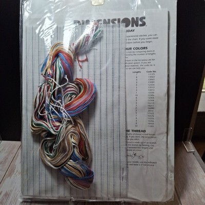 Kit contains cotton embroidery thread, 14 count waste canvas, needle, instructions color accented chart.
