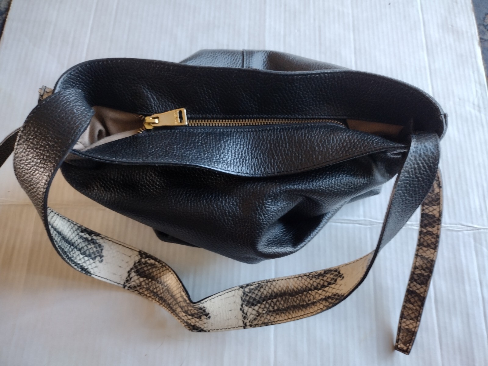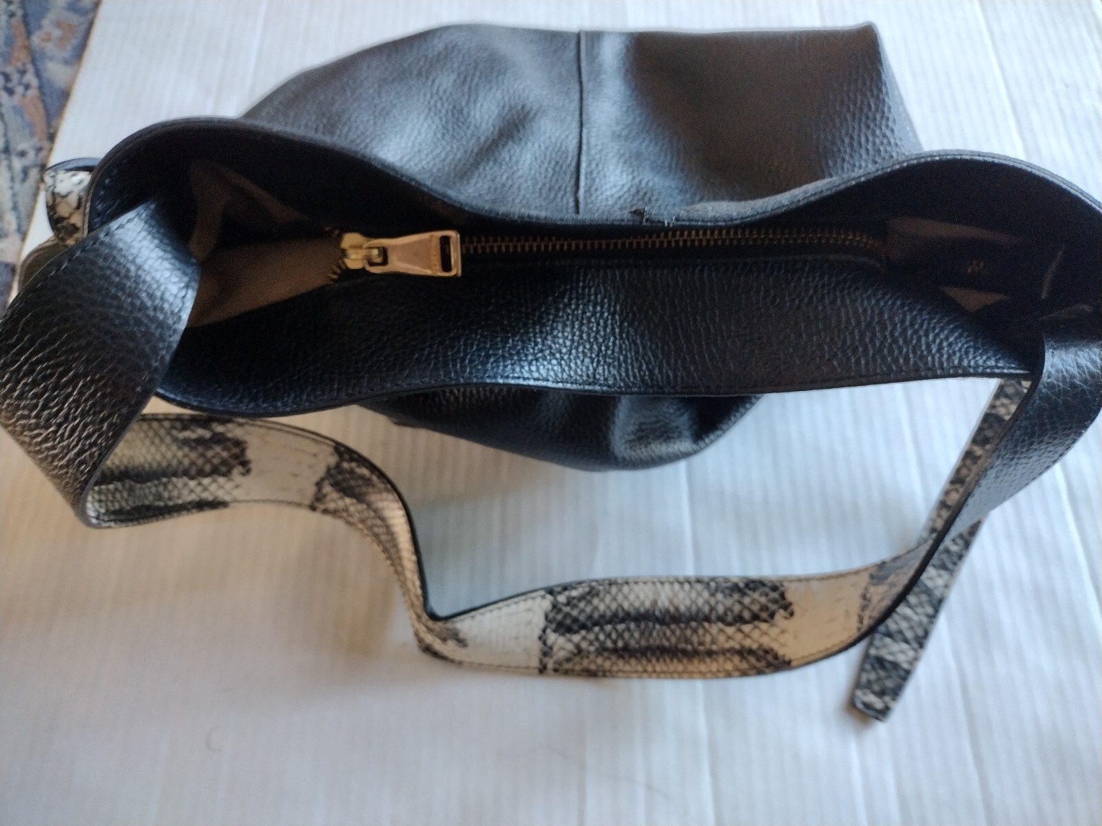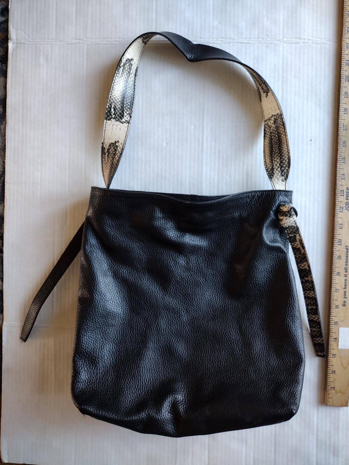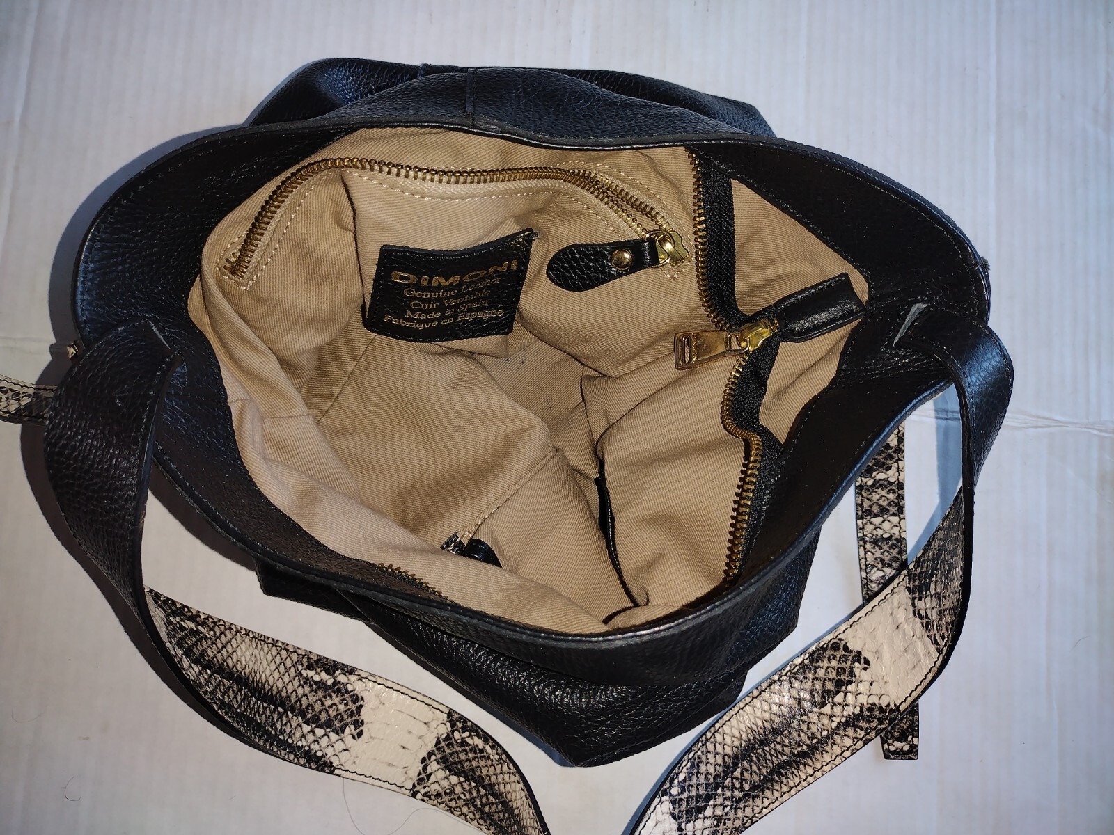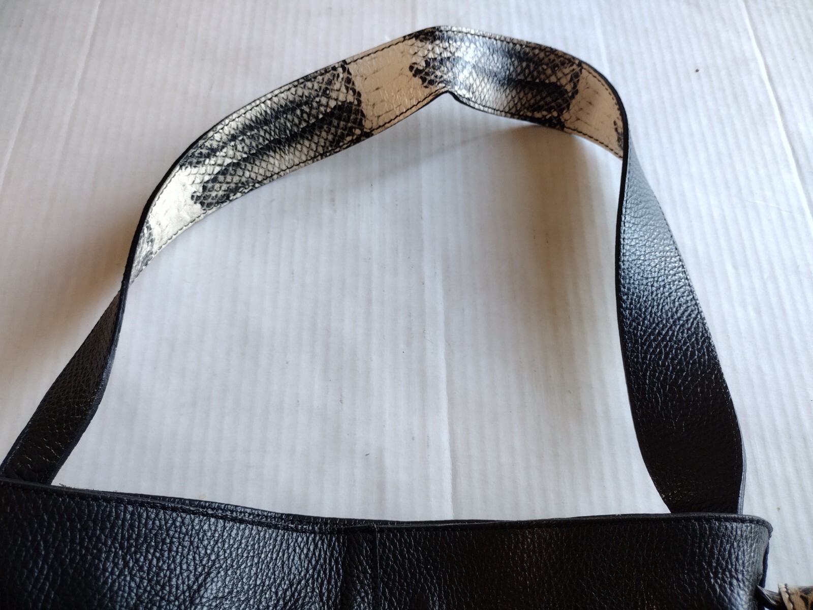 - Dimoni Black Pebbled Leather Snakeskin Shoulder Strap Handbag Spain EUC