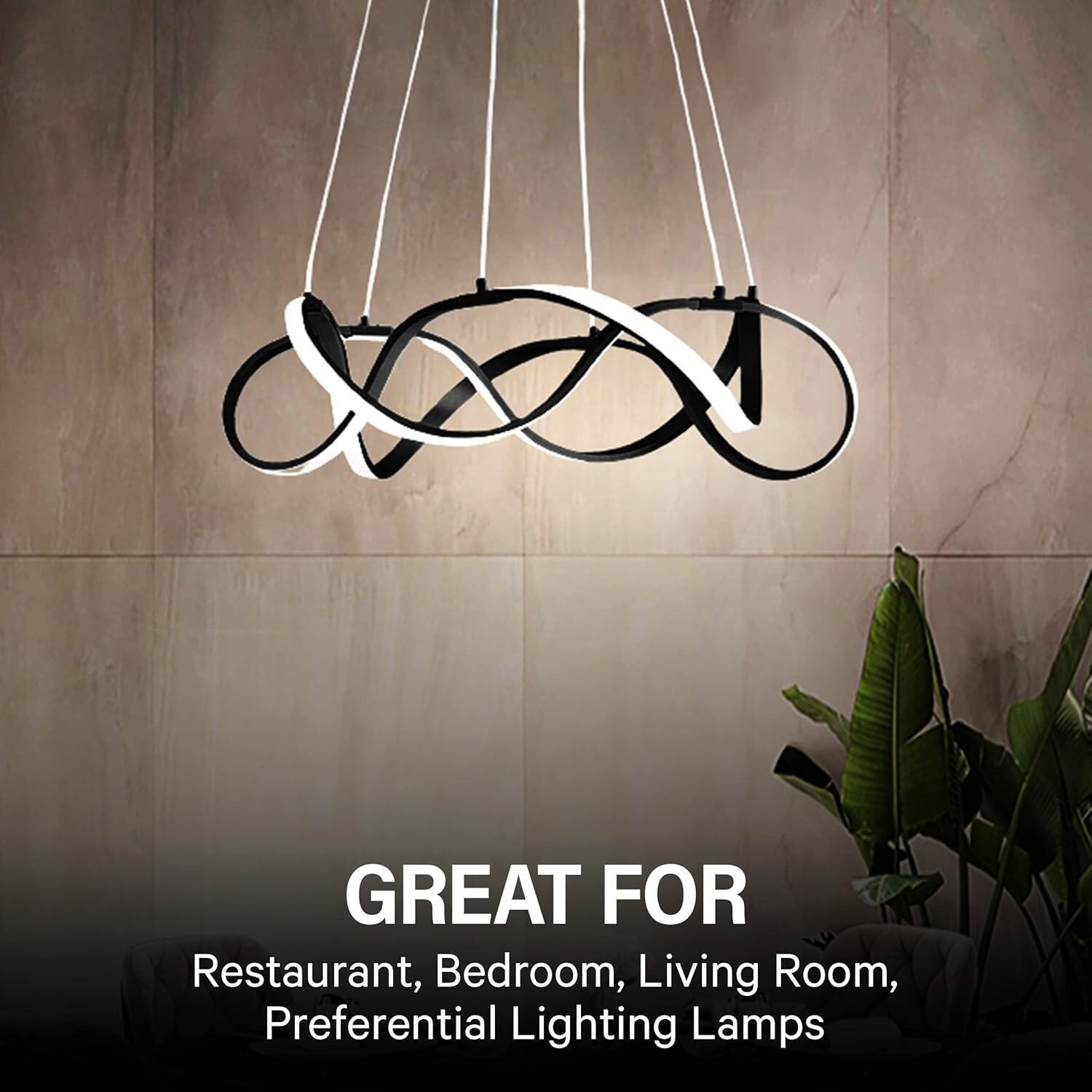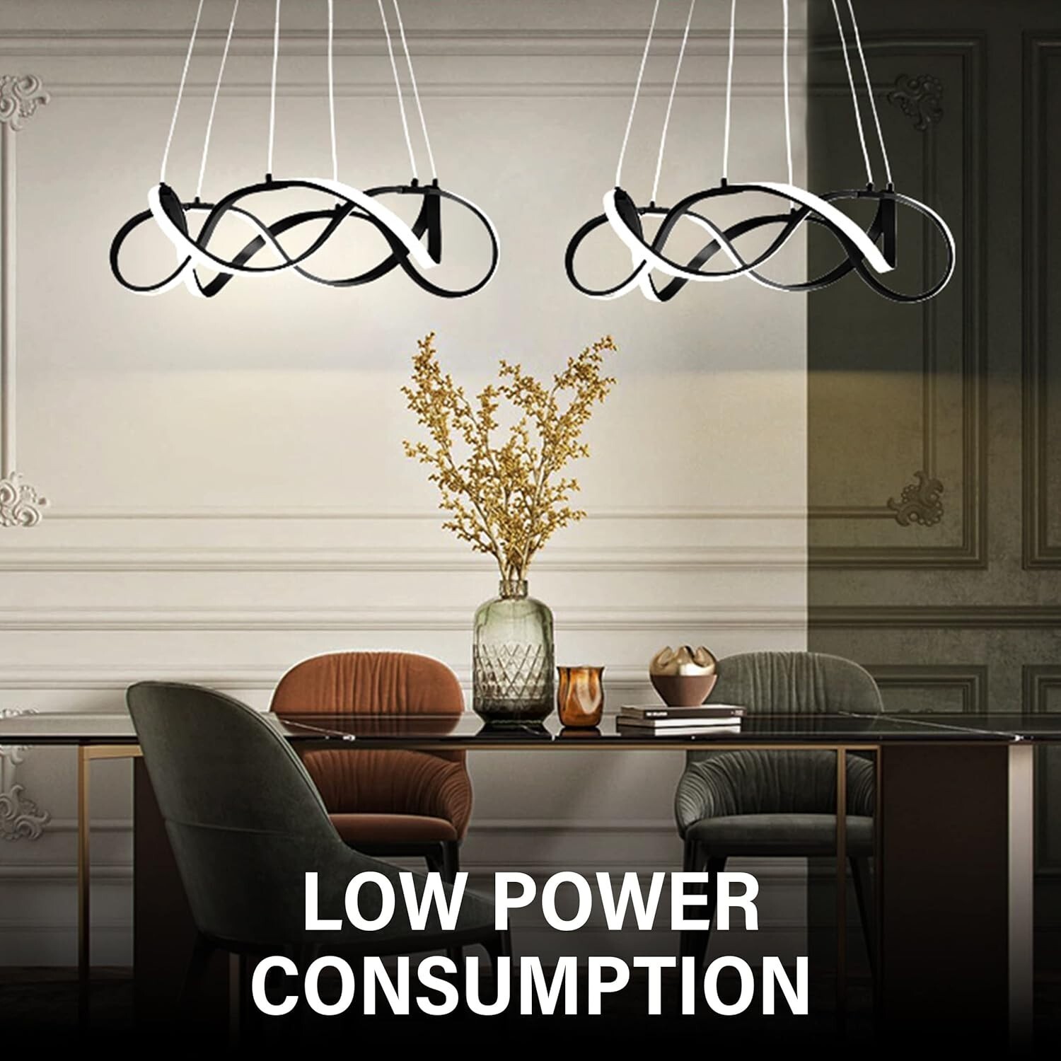 Powerful LED: The Black lamp features a bright, clear light that can output 2800 lumens. With a working time of 50000 hours, this modern chandelier will offer you the light you need depending on your activity, mood, or needs.