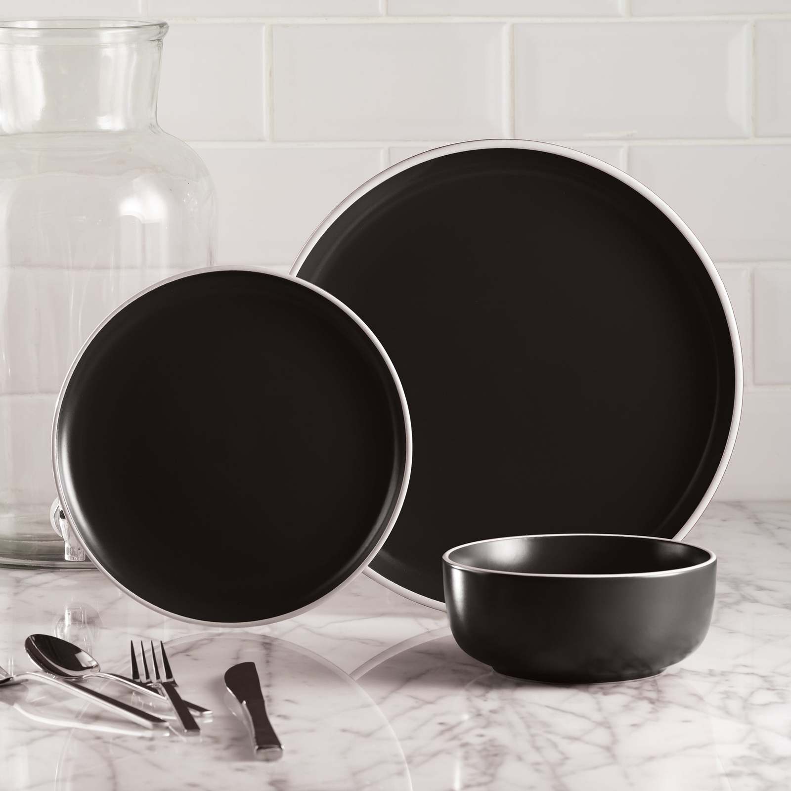 - Dinnerware Set 12 Piece 2 Tone Cylinder Black Service for 4