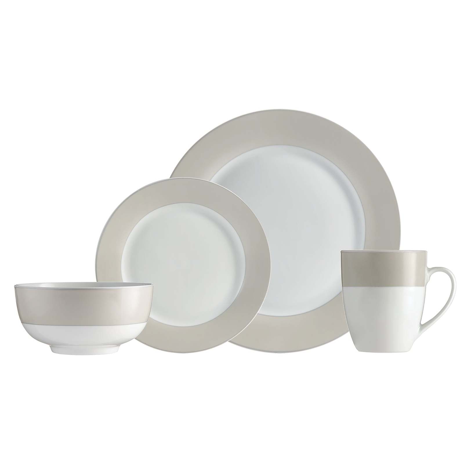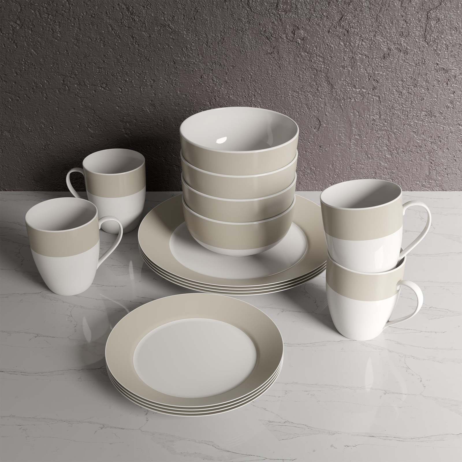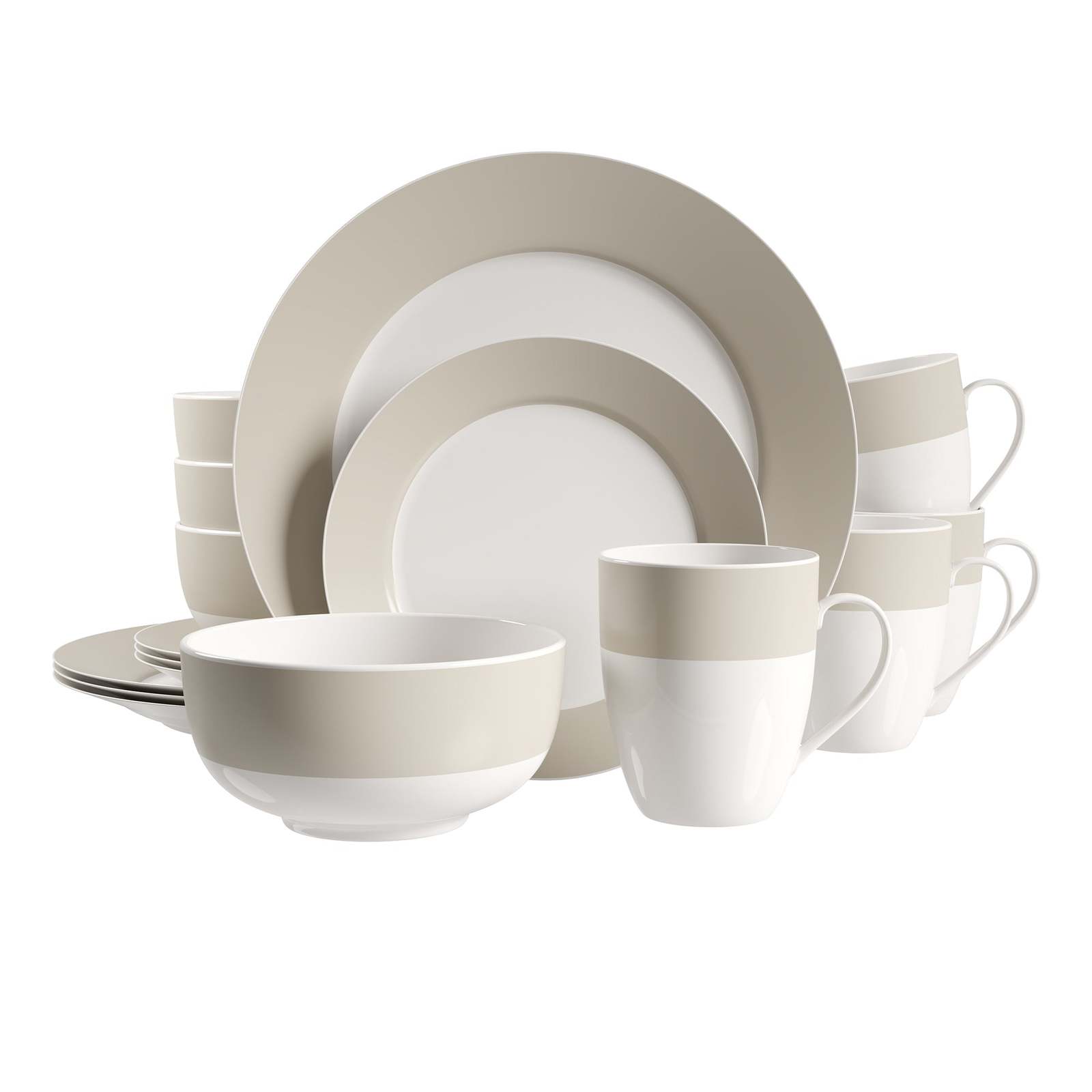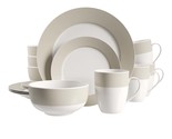 - Dinnerware Set Round Rim 16 Piece Taupe Band Service for 4