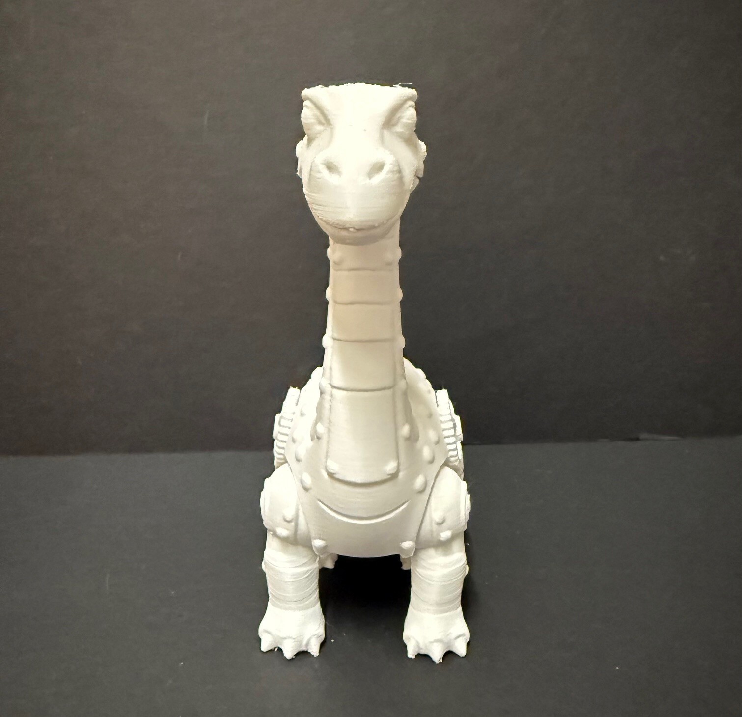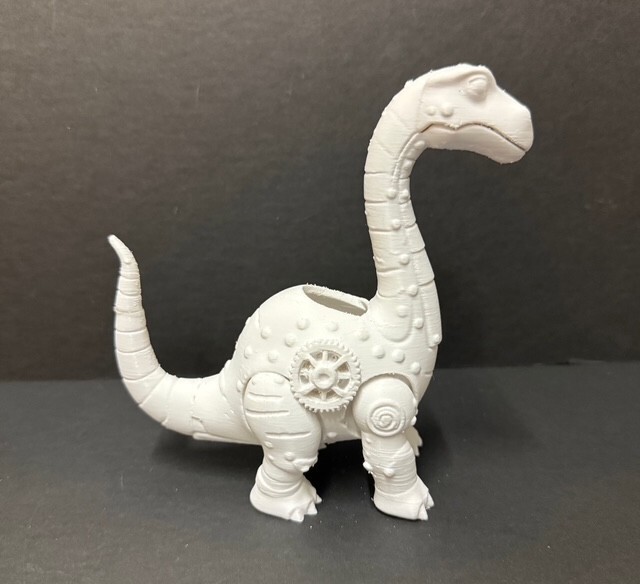 3D printed Dino desktop pen/pencil holder in Steampunk style unpainted.