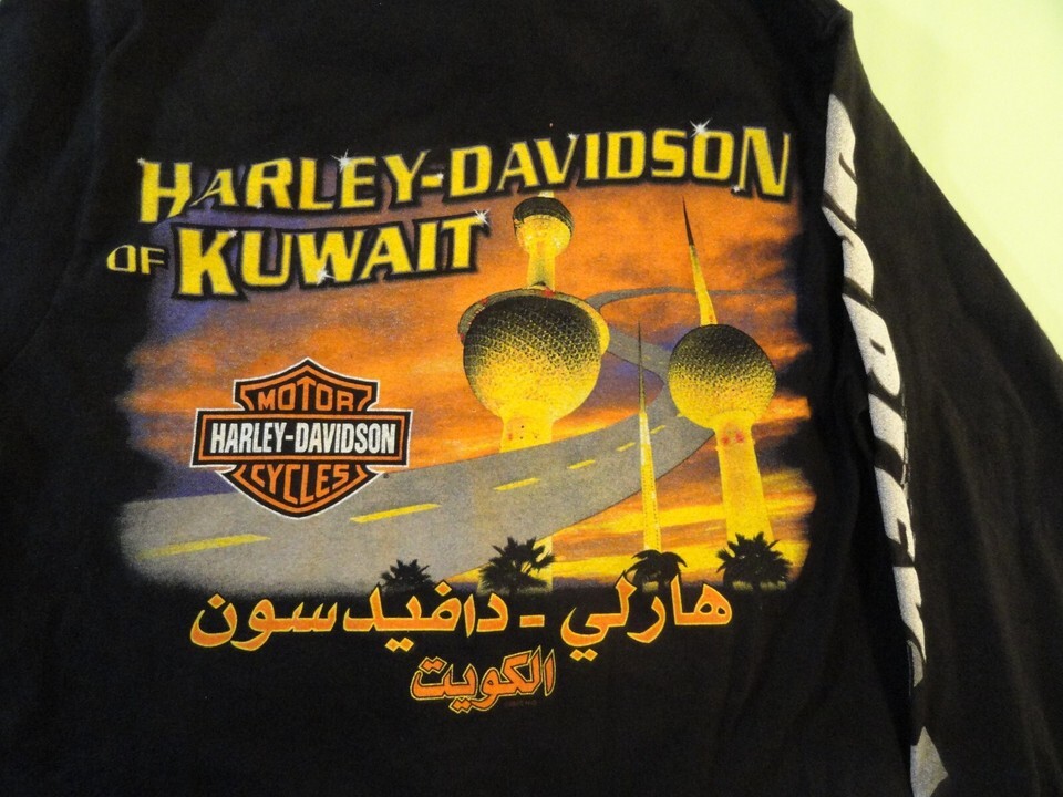 OUT OF PRODUCTION HARLEY DAVIDSON LONG SLEEVE BLACK SHIRT WITH ORIGINAL KUWAIT GRAPHIC DESIGN