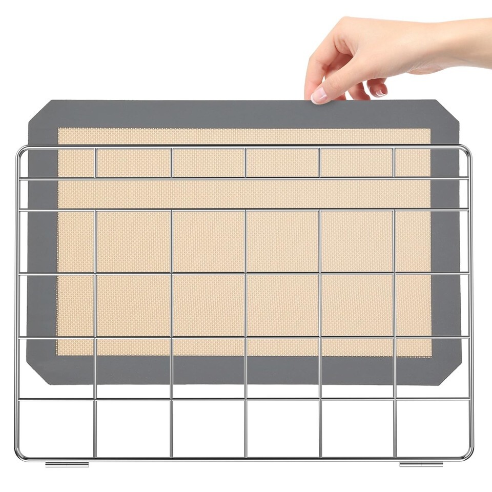 Space saving storage design: Baking mat dishwasher rack not only performs well when washing, but its design is also suitable for use as a drying rack. The upright storage design saves space and can be easily placed in the corner of the kitchen or in the cabinet, avoiding the trouble of difficult storage and access of traditional silicone mats.