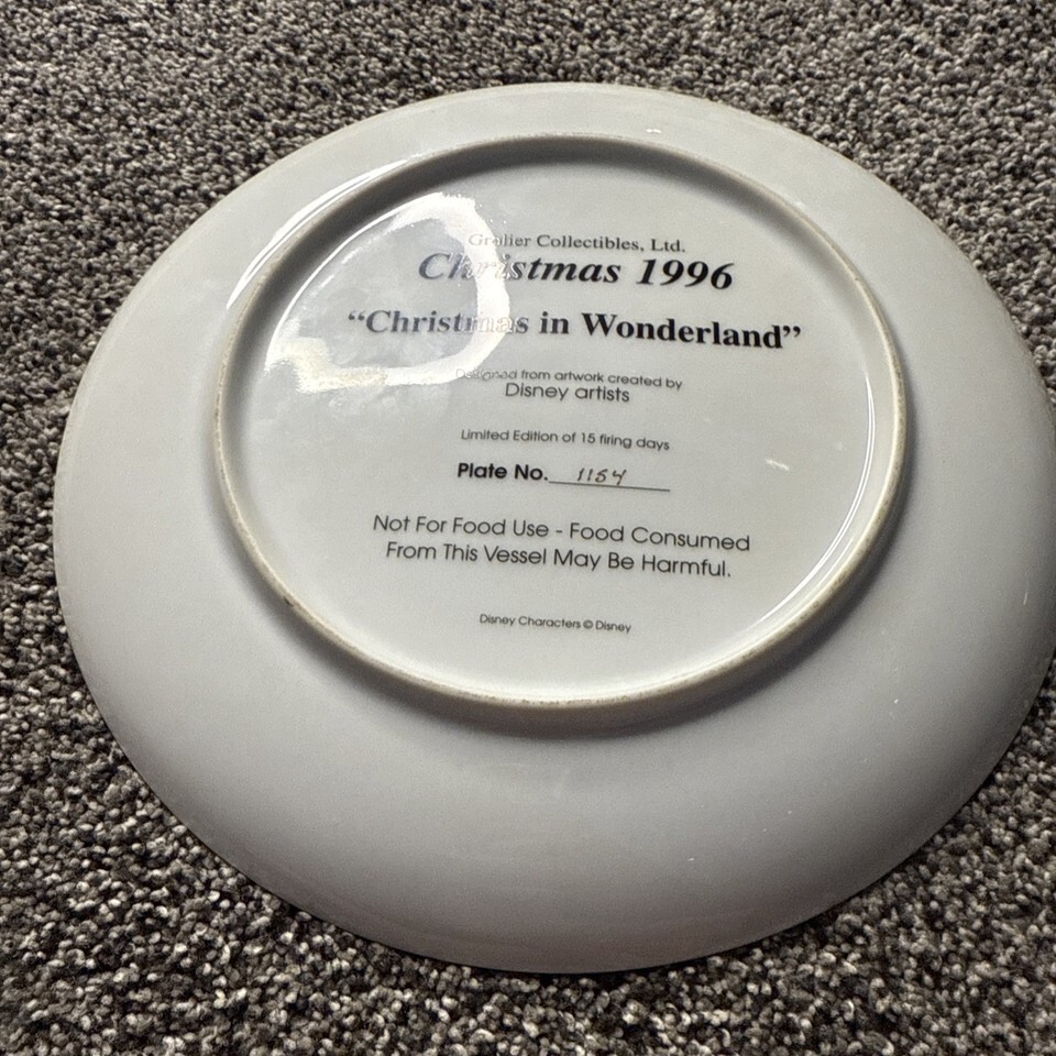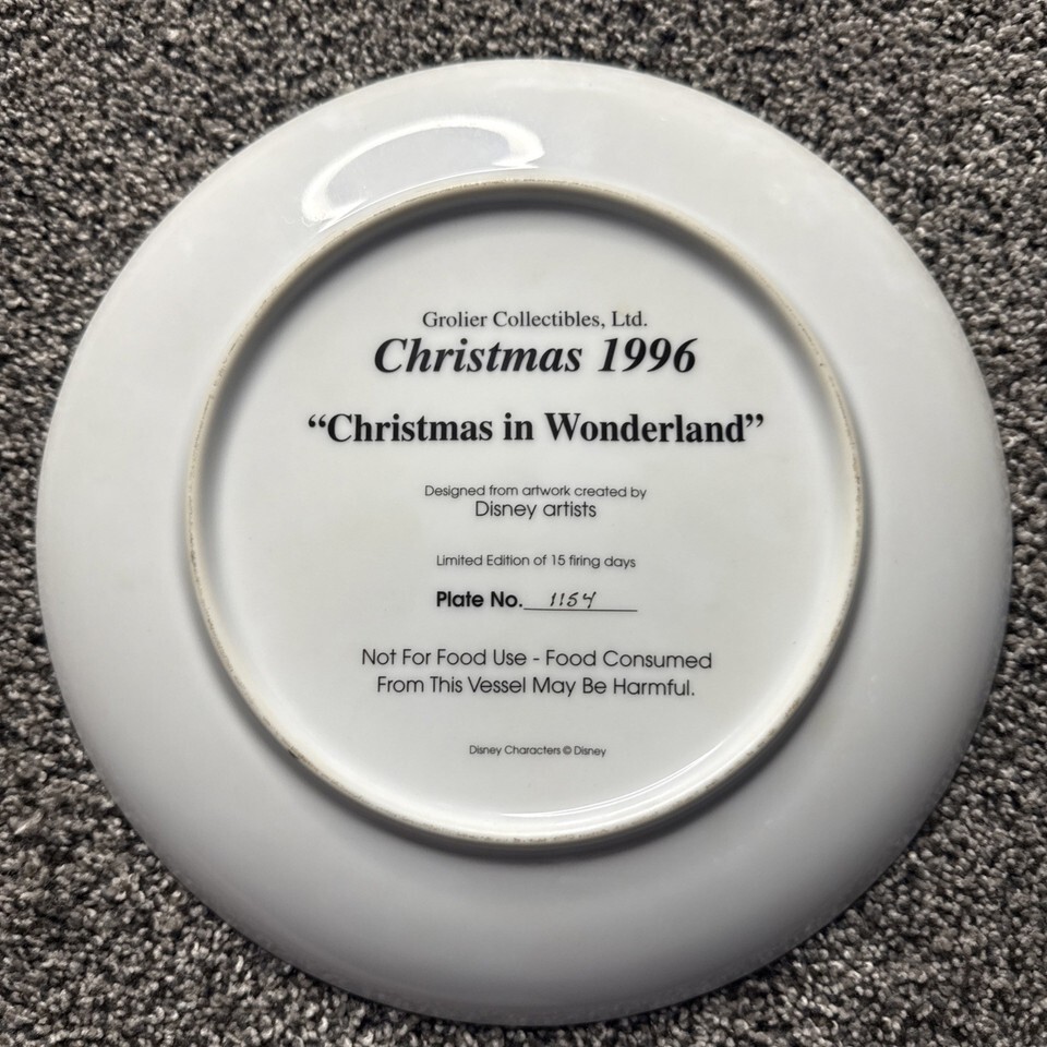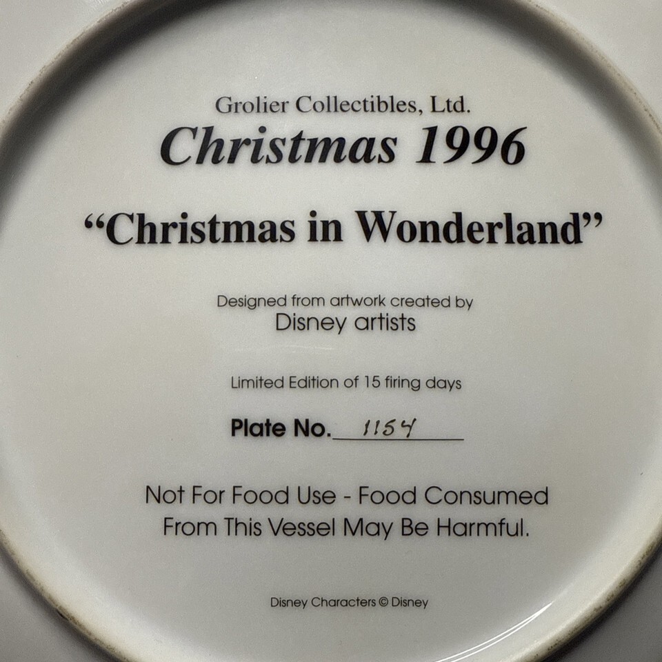 - Disney Alice CHRISTMAS WONDERLAND Christmas 1996 Grolier Collector Plate 8.75”