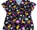 Disney Bambi Black Scrub Top Shirt Size Mediium Colorful Thumper Floral Vibrant