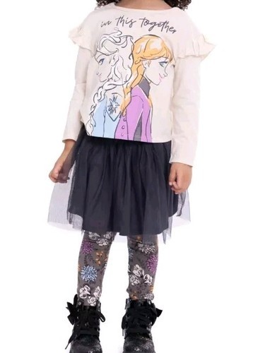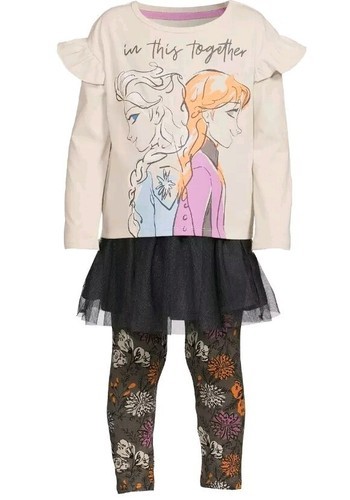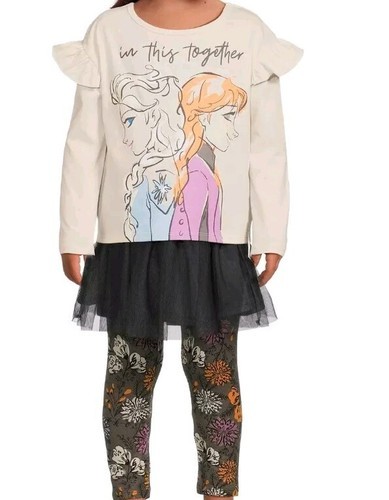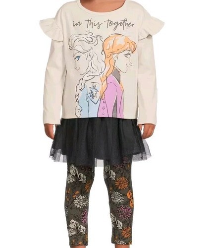 - DISNEY FROZEN 4-Pc GREY Set ~ Top ~ Leggings ~ Skirt ~ Scrunchie ~ Size 2T