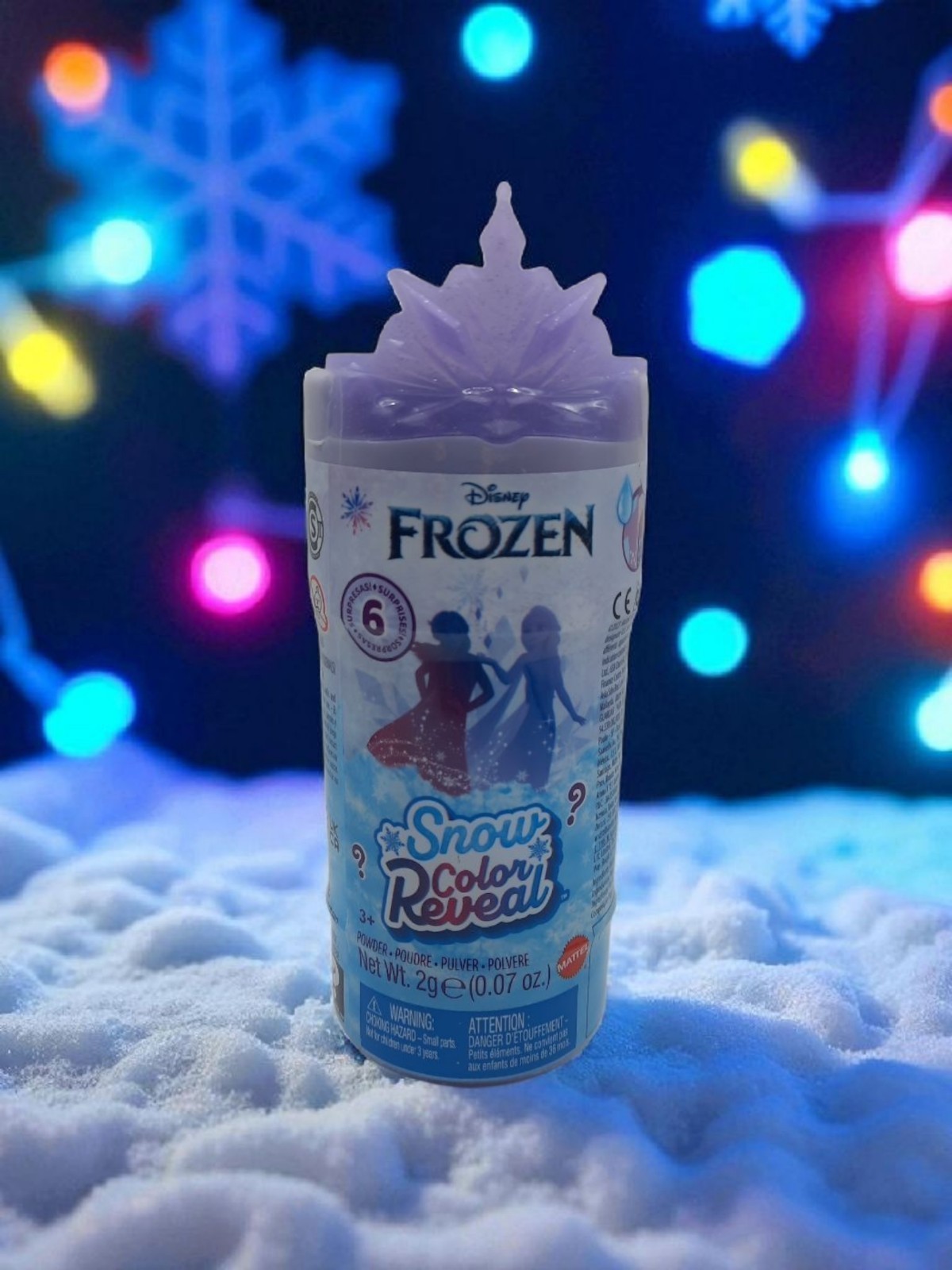 The Disney Frozen Snow Color Reveal Doll offers 6 surprises, all brand new and sealed in the package. This fashion doll features a variety of hair colors and is part of the Disney Princess franchise, specifically from the Frozen series. The set includes one doll and is perfect for fans of the popular animated film.