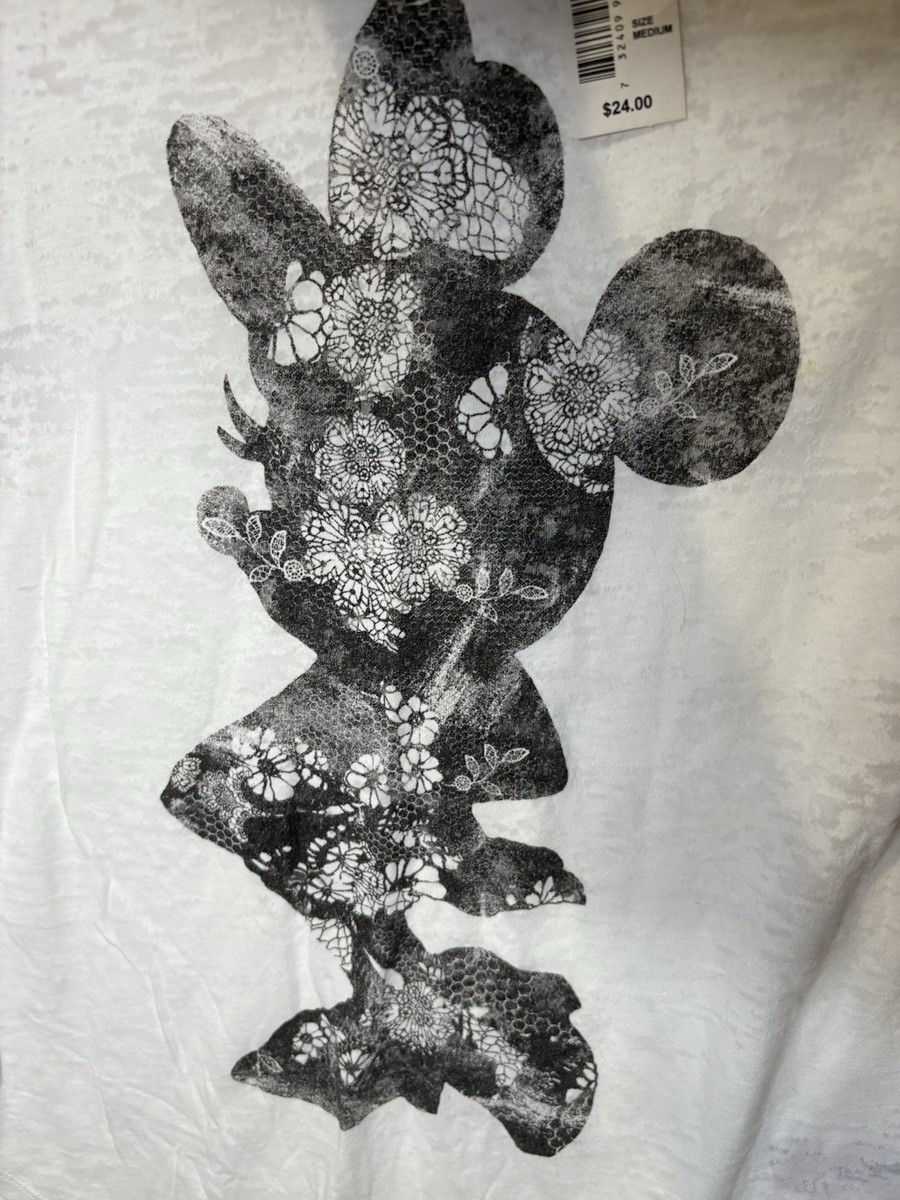 - Disney M Minnie Mouse Pink Raglan Burnout Tee Shirt T-Shirt Floral Fade Print