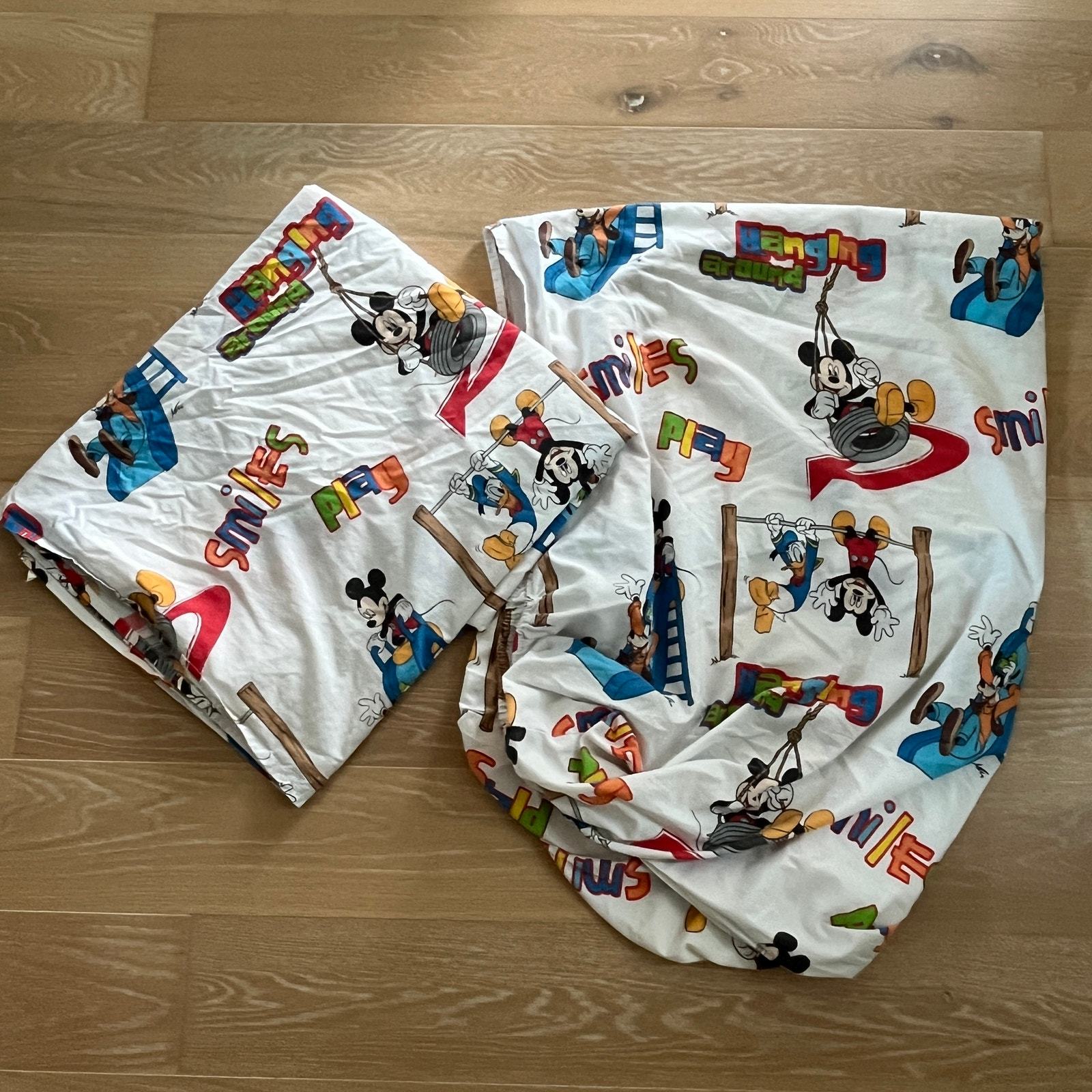 Disney Mickey Mouse Clubhouse fitted flat sheets. Both are in great, preowned condition. No holes, stains or rips. Elastic in fitted sheet is great and not stretched out.