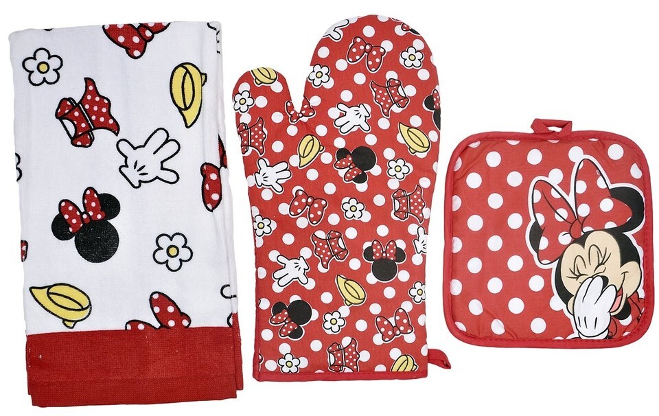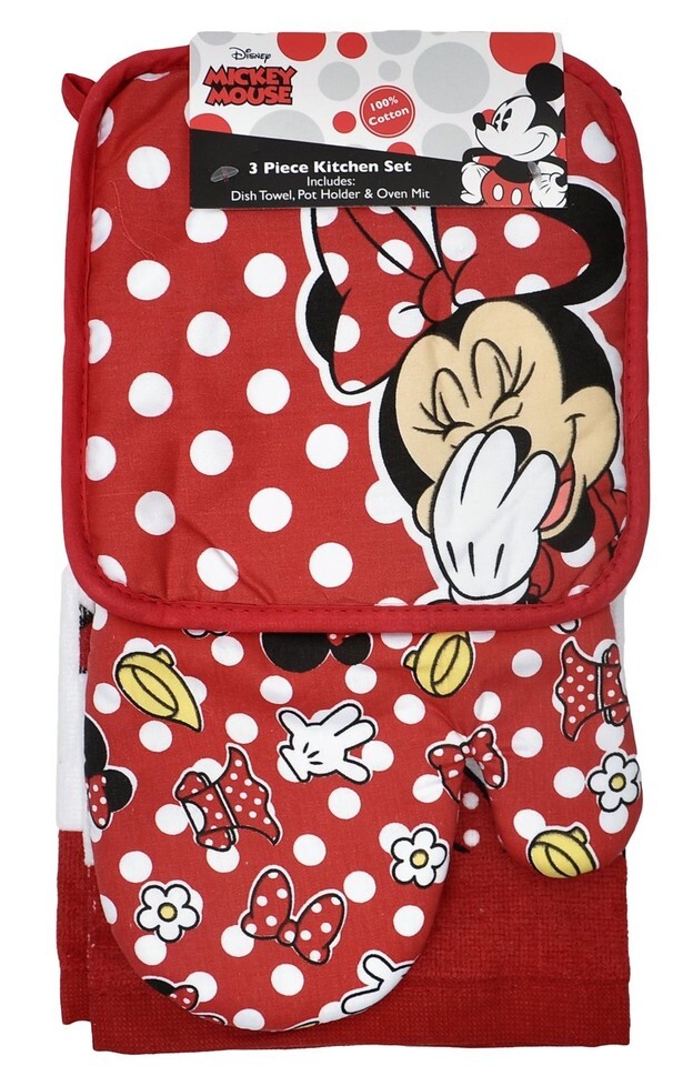 - Disney Minnie Mouse Oven Mitt Pot Holder Dish Towel Set Red 3 Pc Kitchen