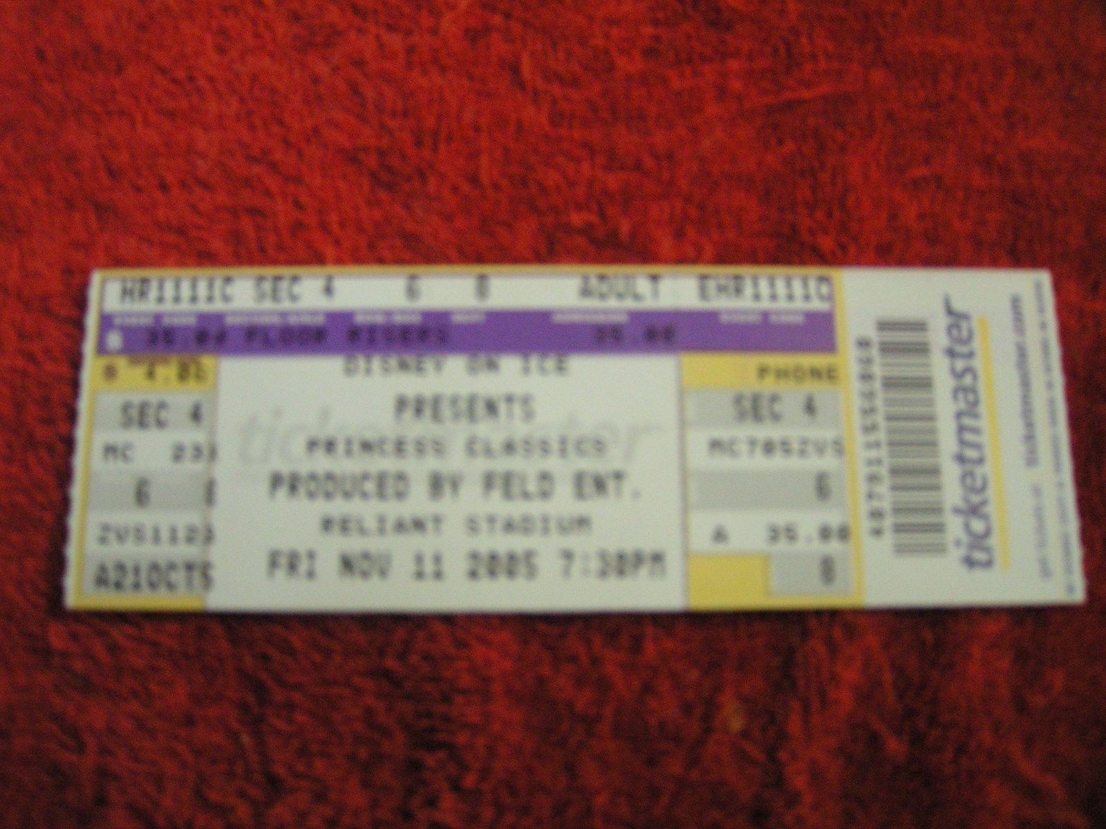 - Disney On Ice Reliant Stadium TX 11/11/2005 Ticket Stub