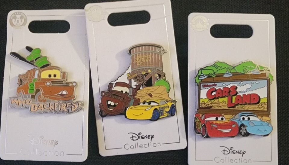Great Disney Parks (3) Pin lot CARS LAND McQueen Sally, Who Backfired, and Stanleys oasis. These Pins are on their Original Cardboard Backing. Pins are in Excellent Condition with No signs of wear. These Pins would be a Great Gift for any enthusiast or the Perfect Addition to any Collection. PLEASE SEE PHOTOS BEFORE BIDDING!!!
