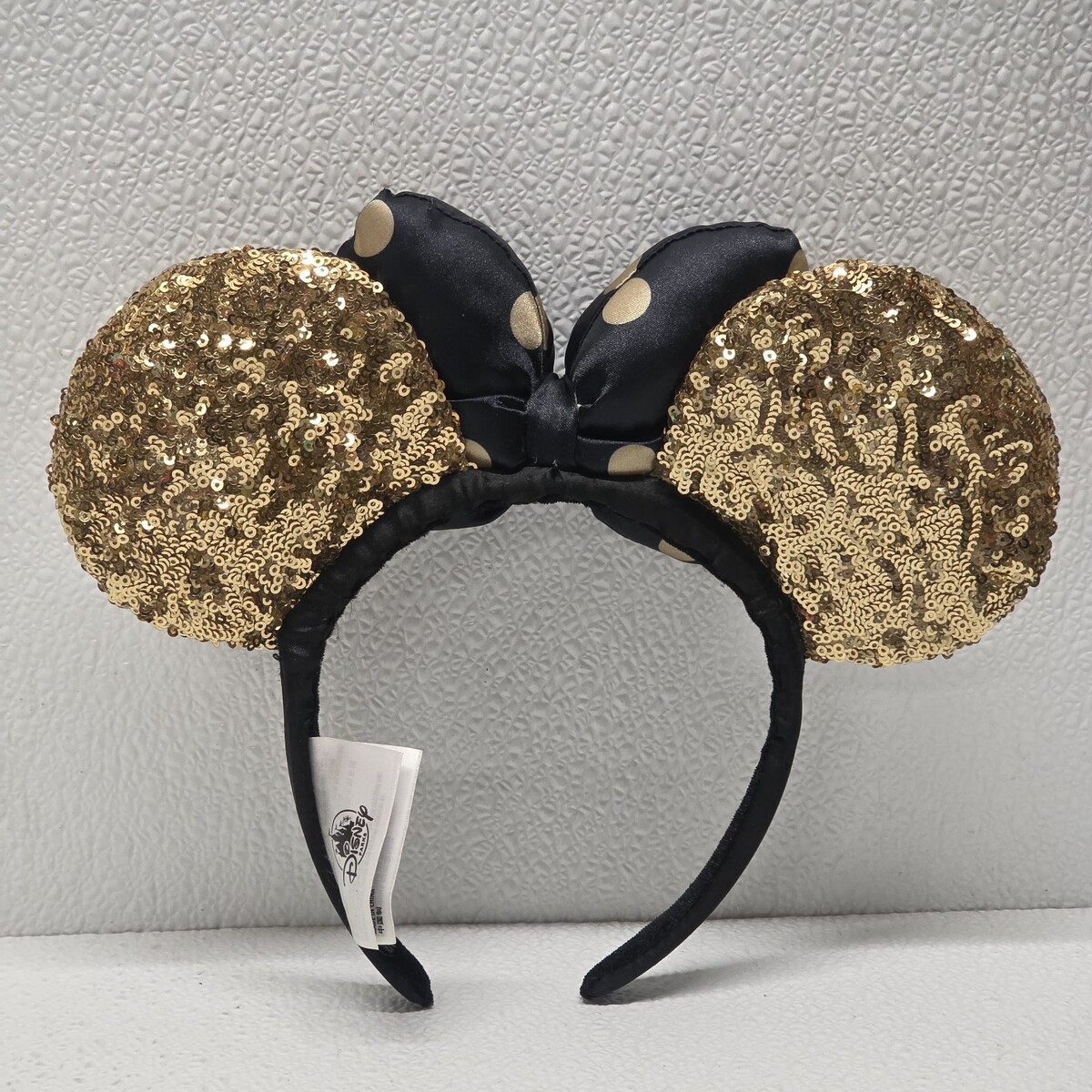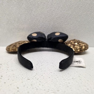 - Disney Parks Minnie Gold Sequin Ears Headband Black & Gold Polka Dot Bow