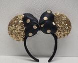 Disney Parks Minnie Gold Sequin Ears Headband Black Gold Polka Dot Bow. Images show actual item that will ship.
