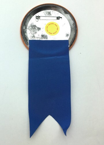 Measures 3" in diameter with a safety pin closure on back.