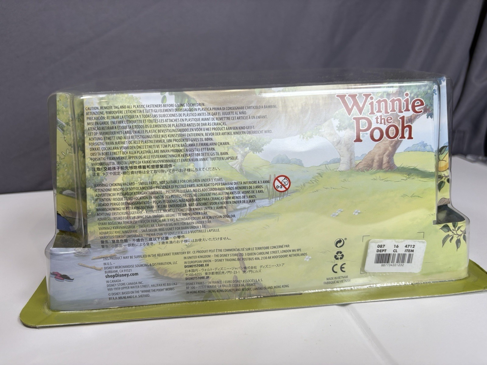The Disney Winnie the Pooh 9-Piece Deluxe PVC Figure Play Set is a collectible figurine set featuring characters from the beloved Winnie the Pooh TV show and franchise. Made by Disney, this set includes 9 pieces of PVC figures depicting different characters from the show. Perfect for fans of Winnie the Pooh, this play set offers a fun and interactive way for children and collectors to recreate scenes from the classic TV show. With intricate details and high-quality design, this set is sure to delight fans of all ages. THERE IS A CRACKED SPOT IN THE PLASTIC COVER ON THE CORNER. See photo.