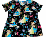 - Disney Women’s Scrub Shirt Black FROZEN Elsa & Anna Flowers Floral Size Large