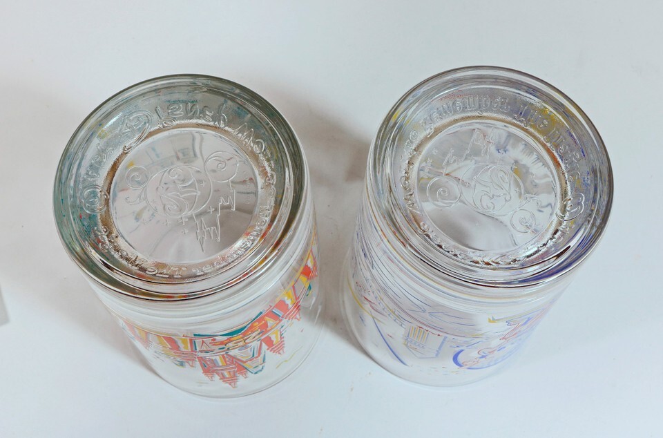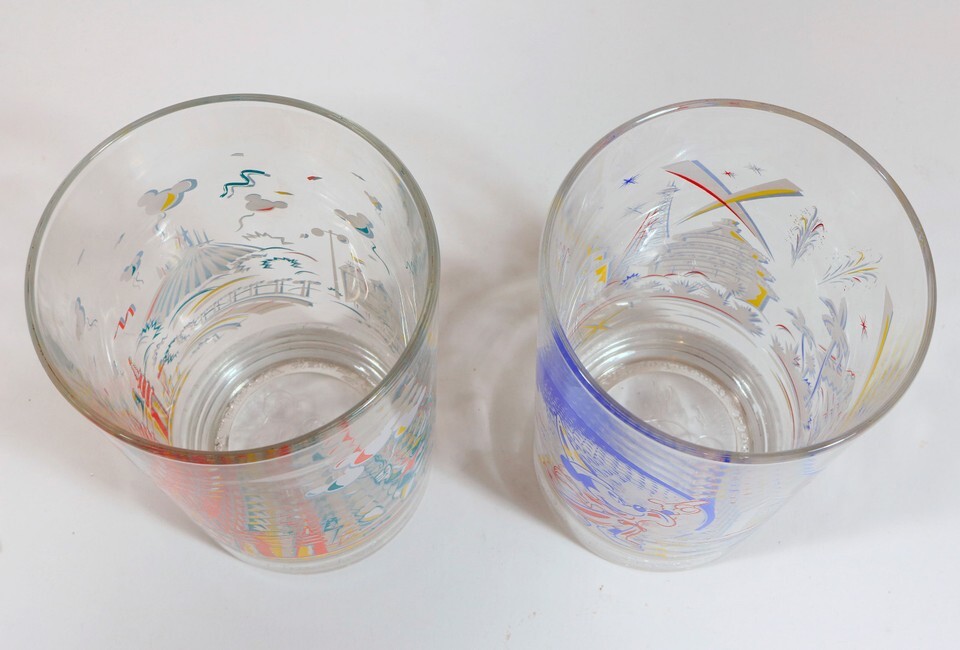 Very clean pre-owned Set of 2 Walt Disney Commemorative glasses are in excellent condition. There are no chips or cracks. One glass has Mickey Mouse as the Sorcerers Apprentice. The other glass features the Magic Kingdom with Donald Duck celebrates the 25 anniversary of the park.