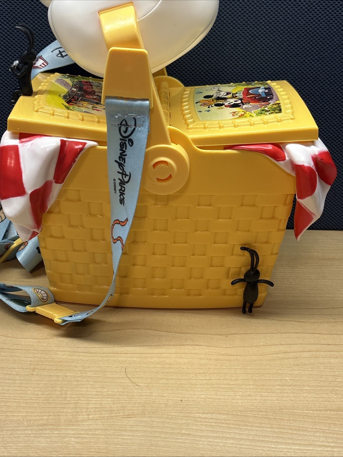 - DISNEYLAND TOON TOWN PICNIC BASKET WITH MICKEY GLOVE HANDLE ~ NEW Popcorn bucket