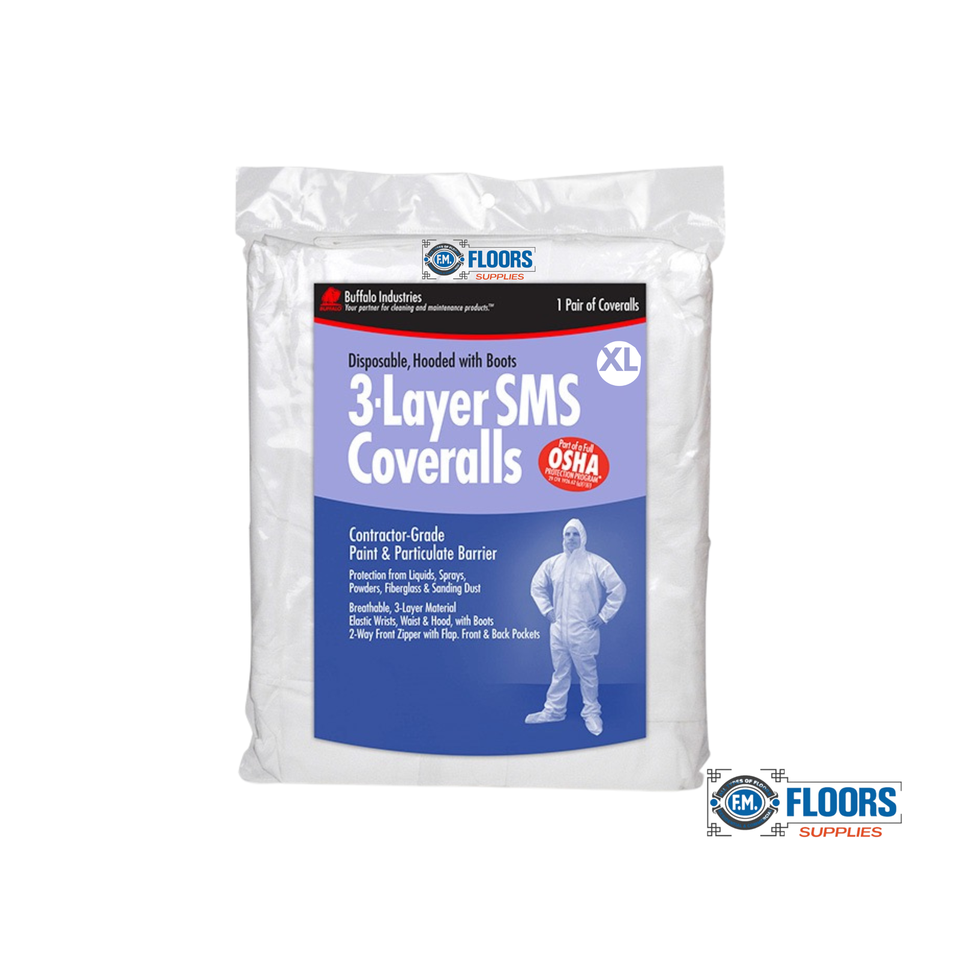 3-layer Lead Abatement Disposable Coverall, Size XXL, Pack of 1, Attached Hood and Booties, Zippered Front with Flap, Elastic Wrists, Ankles and Waist, Front, Back Pockets elastic Lead abatement disposable coverall Protect from airborne lead paint particulates produced by chipping, scraping or sanding Breathable and 3-layer material lead abatement coverall feature, elastic wrists, waist and hood 2-Way front zipper with flap Available in XL - L size