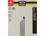 Master Mechanic, 4 piece, glass tile carbide tipped drill bit set, includes 1/8", 1/4", 3/16" 5/16" drill bits, standard shank, Spear pointed tip reduces breakouts when drilling from 1 side to the other, may be used with any 3/8" drill press or variable speed drill, zinc finish, recommended for use in ceramic tile, mirrors or glass of all types, marble, tile, vitrolite China, Carded.