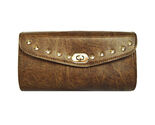 Universal fitting on ALMOST ANY TYPE of motorcycle Dimensions:10 3/4" L x 3 1/2"W x 5 1/2" H Clasp for easy open/close Studded accents Buckled straps to secure to bike 1 main compartment
