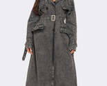 The faded charcoal-black wash adds depth and dimension, while the belted waist cinches in to create a flattering, hourglass silhouette. Functional yet stylish, the coat boasts oversized pockets and a double-breasted design for that polished, on-trend look. Perfect for layering over casual outfits or pairing with heels for an elevated ensemble.