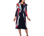 This dress features an effortlessly elegant midi silhouette crafted from a finely pleated knit fabric that drapes with a soft, graceful flow. The main dress offers classic simplicity, while the look is elevated with a striking graphic open front jacket. The jacket showcases a dramatic waterfall lapel and bold abstract print for eye-catching appeal, blending hues in a contemporary palette for modern flair. Three-quarter sleeves and an easy, unstructured layer give this set a sophisticated, comfortable finish, perfect for both casual occasions and polished outings.