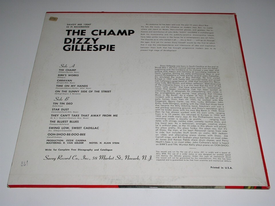 - Dizzy Gillespie The Champ Record Album RVG Savoy 12047 MONO Coltrane VG++/NM