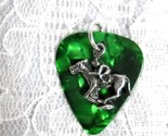 - DK EMERALD GREEN CELLULOID GUITAR PICK JOCKEY RACE HORSE CHARM PENDANT NECKLACE