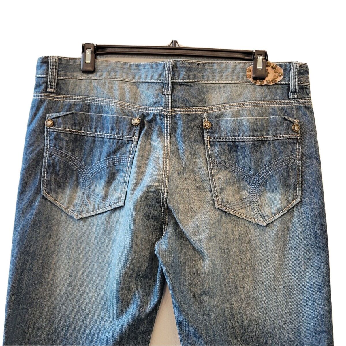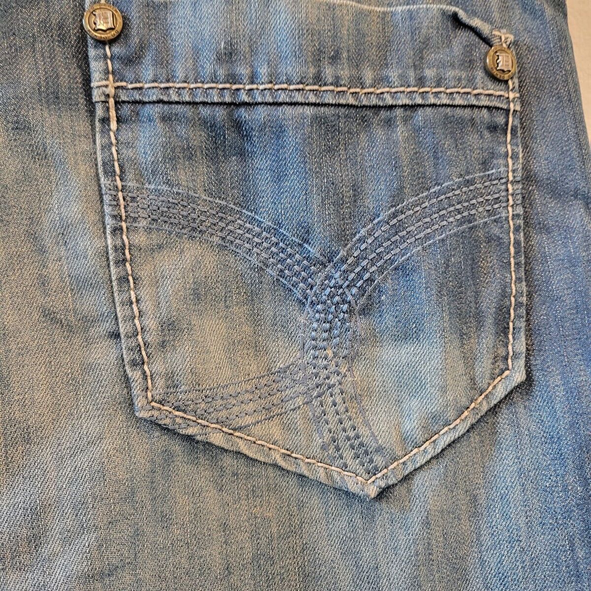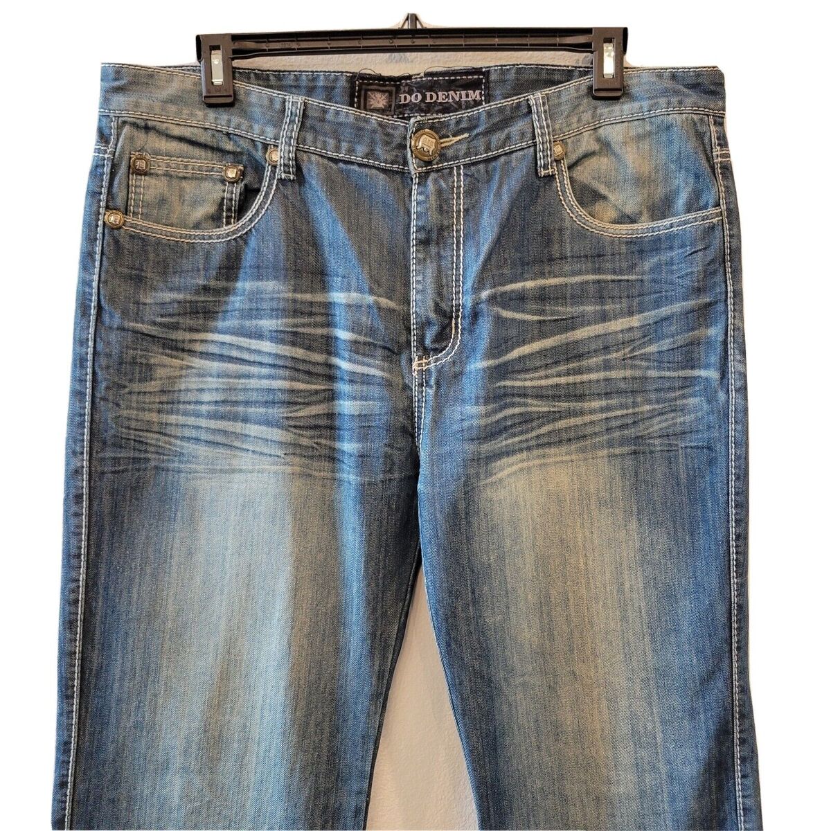 - Do Denim Distressed Blue Jeans Tag 38 x 32 Medium Wash Straight Leg