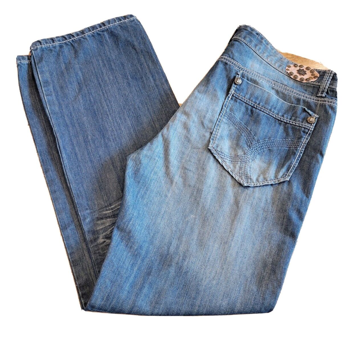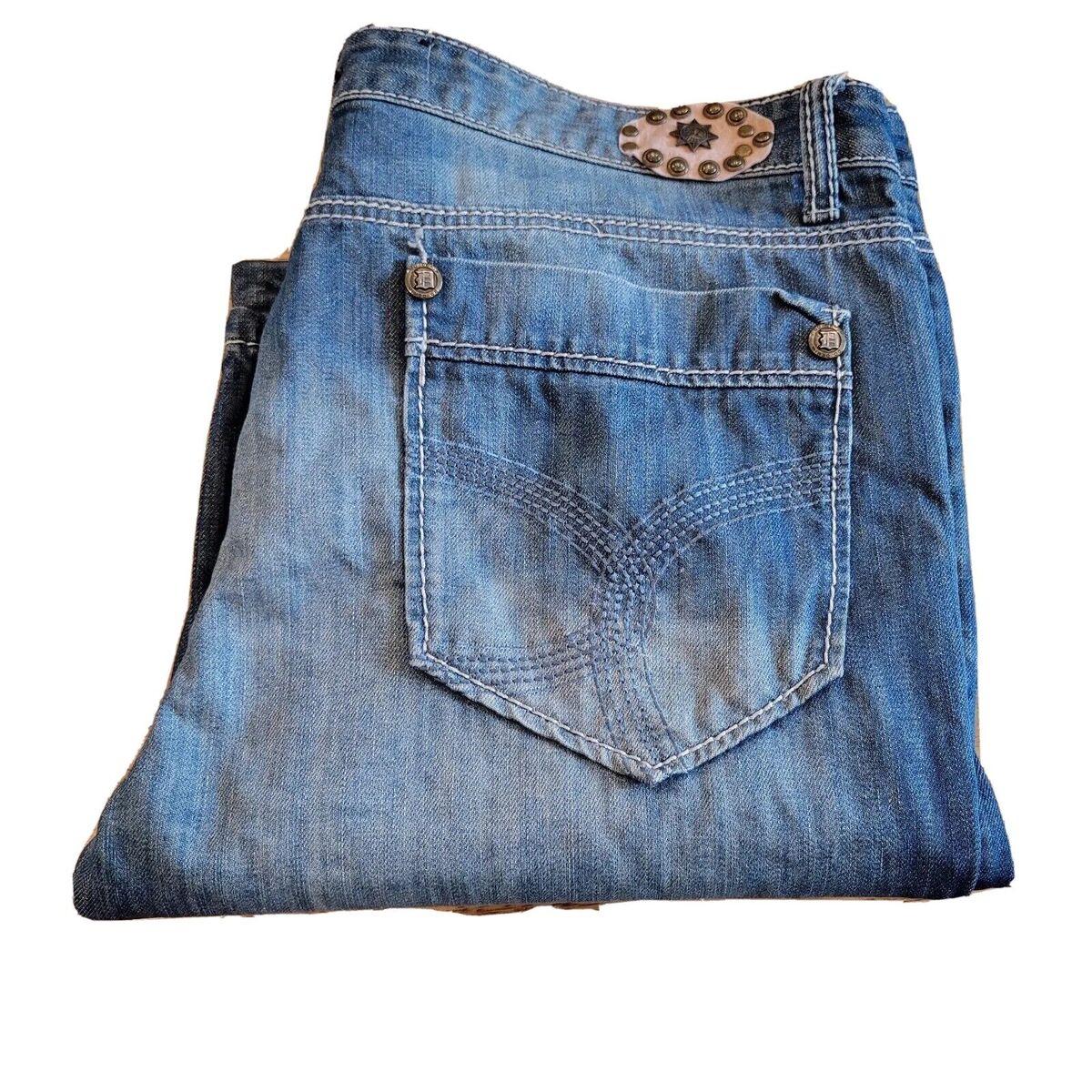 Do Denim Distressed Blue Jeans Tag 38 x 32 Medium Wash Straight Leg