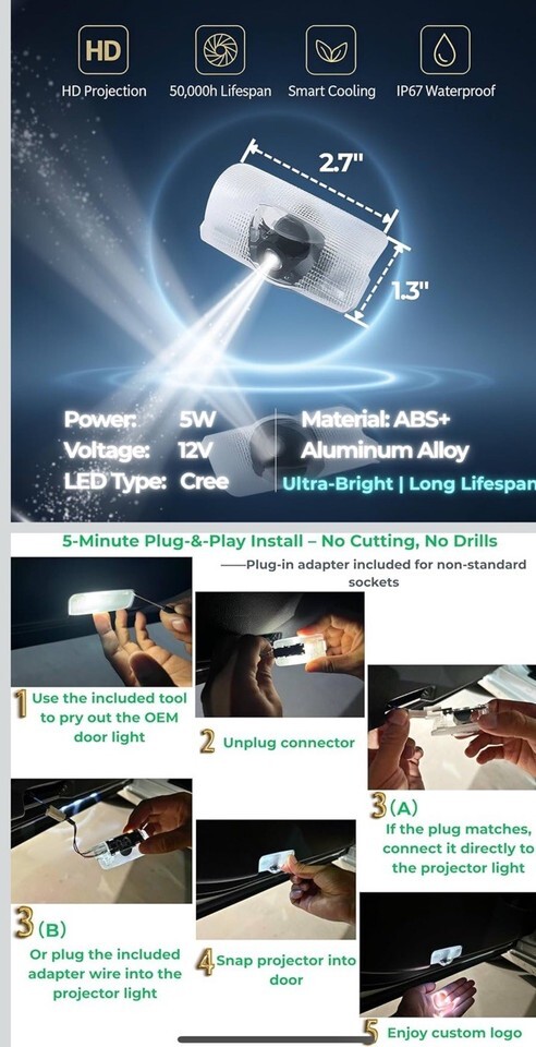 - Dodge Universal Wireless Car Door Projector Puddle Lights Battery Operated