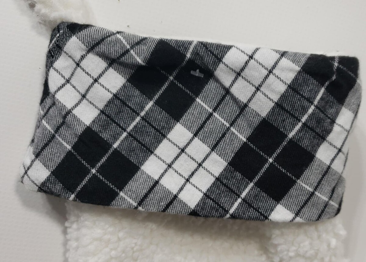 - Dog/Cat Paw Print Heart Christmas Stocking Buffalo Black Plaid Sherpa 12 in