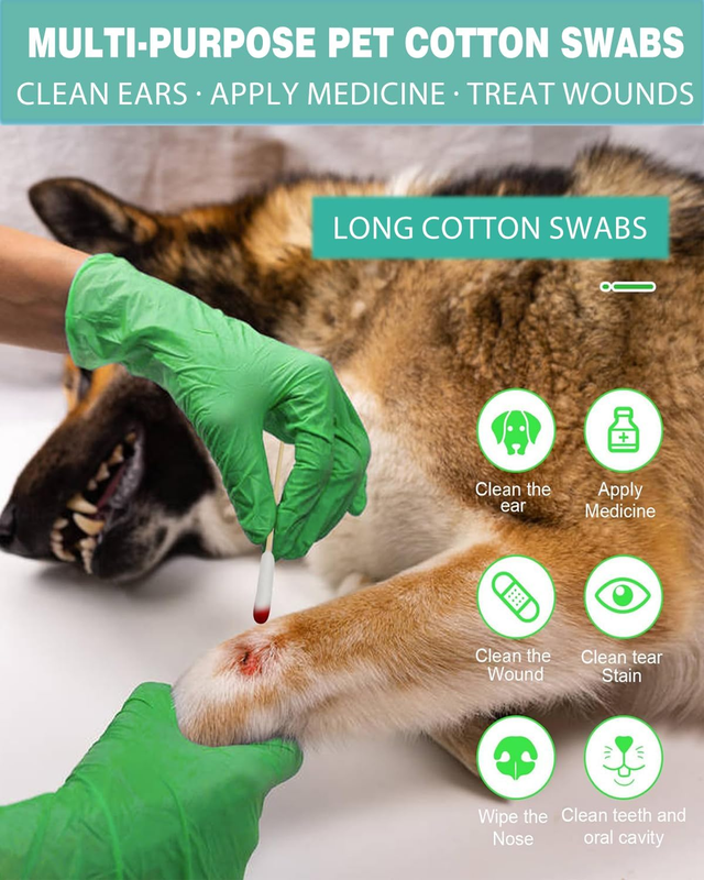- Dog Ear Cleaner Q Tips, 200Pcs, 6 Inch Long Cotton Swabs for Dogs - Biodegradab