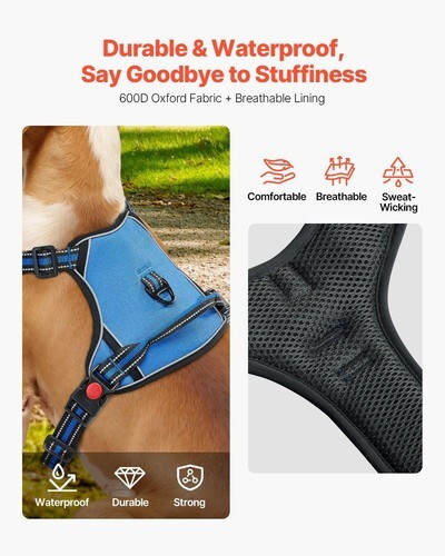 Durable and Breathable: The harness for dogs is made from strong material with reinforced stitching for long-lasting durability. The breathable mesh padding keeps your dog cool and comfortable in any weather