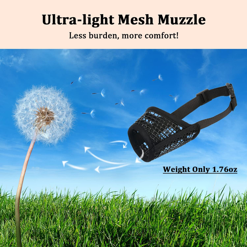 Ultra-breathable Mesh Muzzle: Made of premium mesh, our mesh dog muzzle is soft but still resistant and long-lasting. The newly upgraded ultra-breathable mesh design allows your dogs to breathe freely and feel more comfortable while wearing it. Extra soft padding can protect the front of your dog?s nose from rubbing and is more skin-friendly