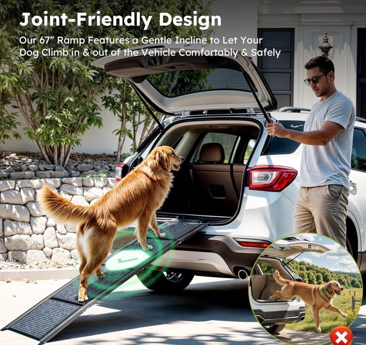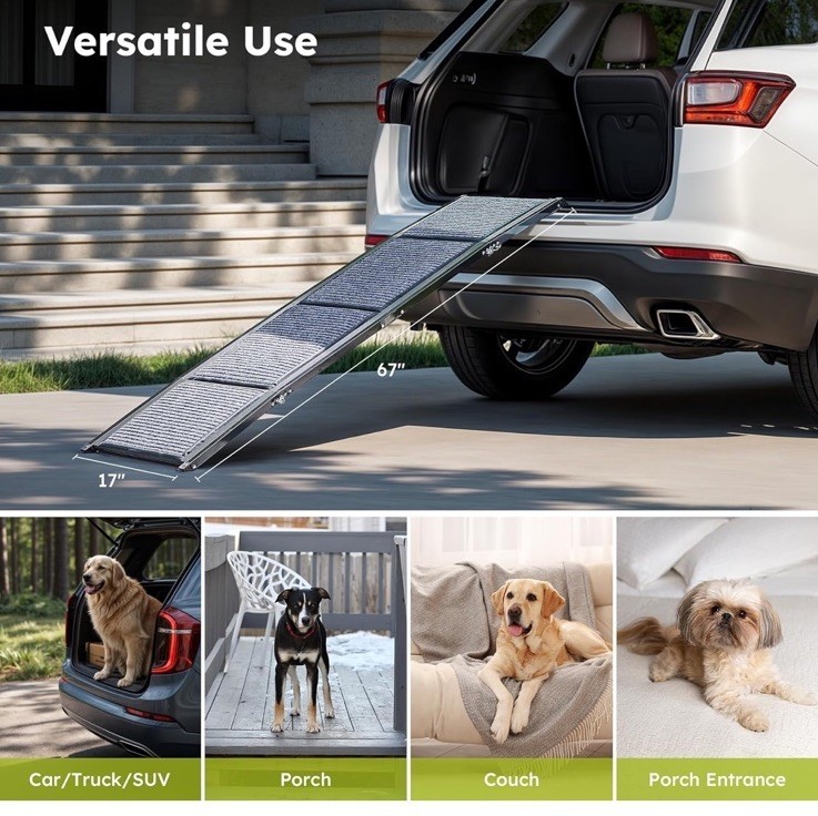 - Dog Ramp for Car, 67" Folding Pet Ramp for Large Dogs up to 200 lb, 17