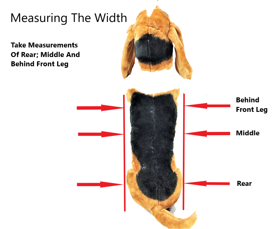 1) To measure the width: Measure your pet's rear; middle and front just behind the front legs. Write down the widest measurement.