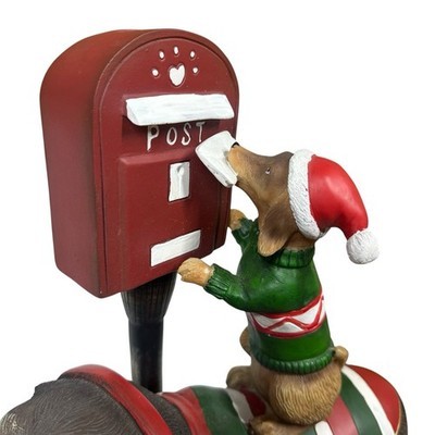 Dogs Mailing Letter to Santa Resin Christmas Figurine Pit Bull/Boxer Dachshund Weenie Dog