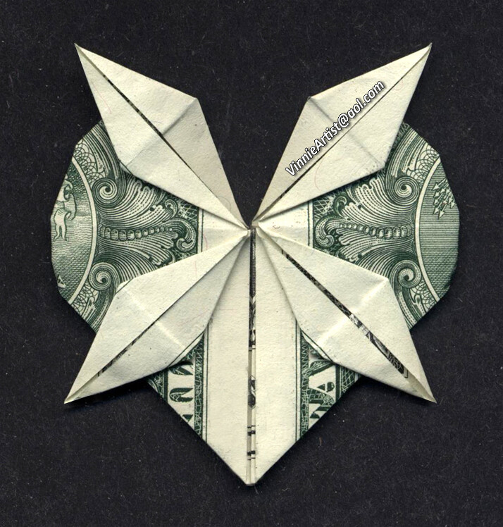 - Dollar Origami 4-point Star HEART Made w/ REAL MONEY Handmade Cash Art Gift Idea