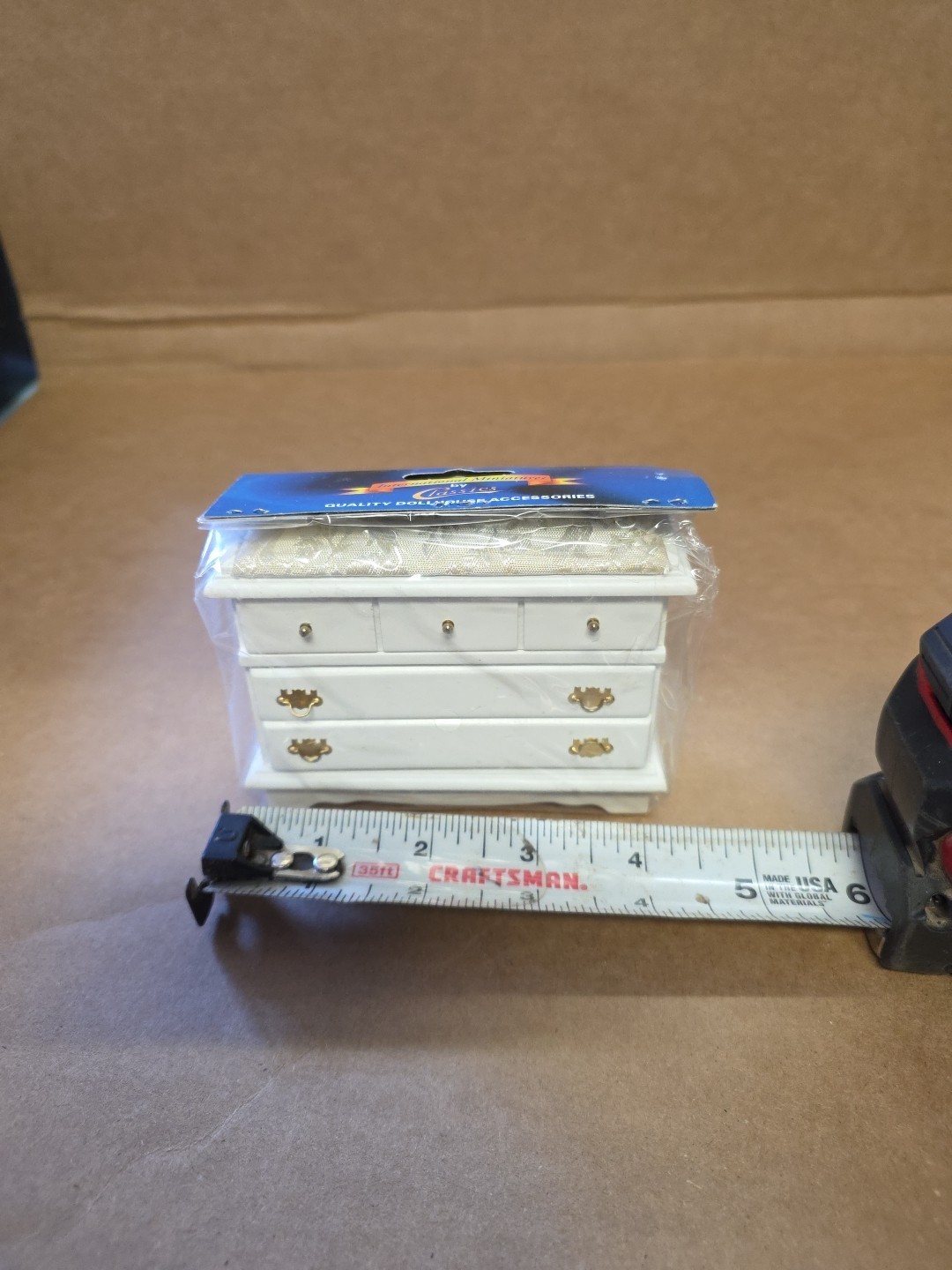 - Dollhouse Miniature Changing Table White Dresser Ivory Top International Classic