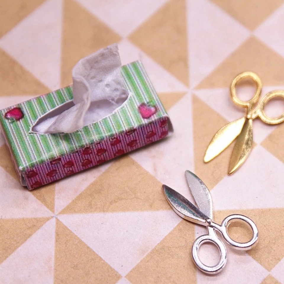Add a touch of elegance to your dollhouse with these beautiful scissors. Made of high-quality metal, they are durable and perfect for everyday use. Whether you are a collector or just looking for a unique addition to your dollhouse, these scissors are sure to impress. They come in a sleek silver or gold finish, adding a touch of glamour to any room. Use them to cut out paper or fabric for your dollhouse projects, or simply display them as a decorative item. These miniature scissors are a must-have for any dollhouse enthusiast.