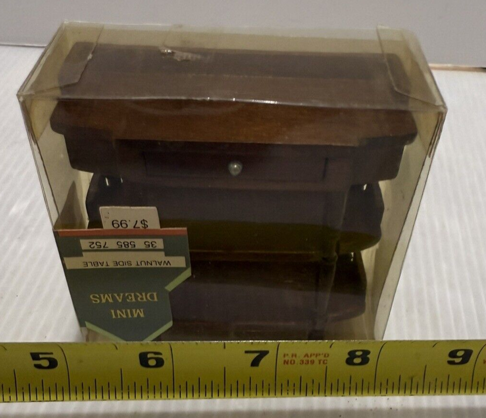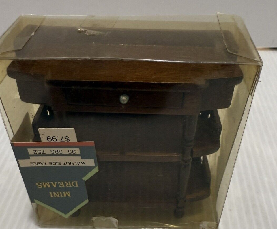 Vintage NOS Miniature Walnut Side Table Dollhouse Mini Dreams Orig Box