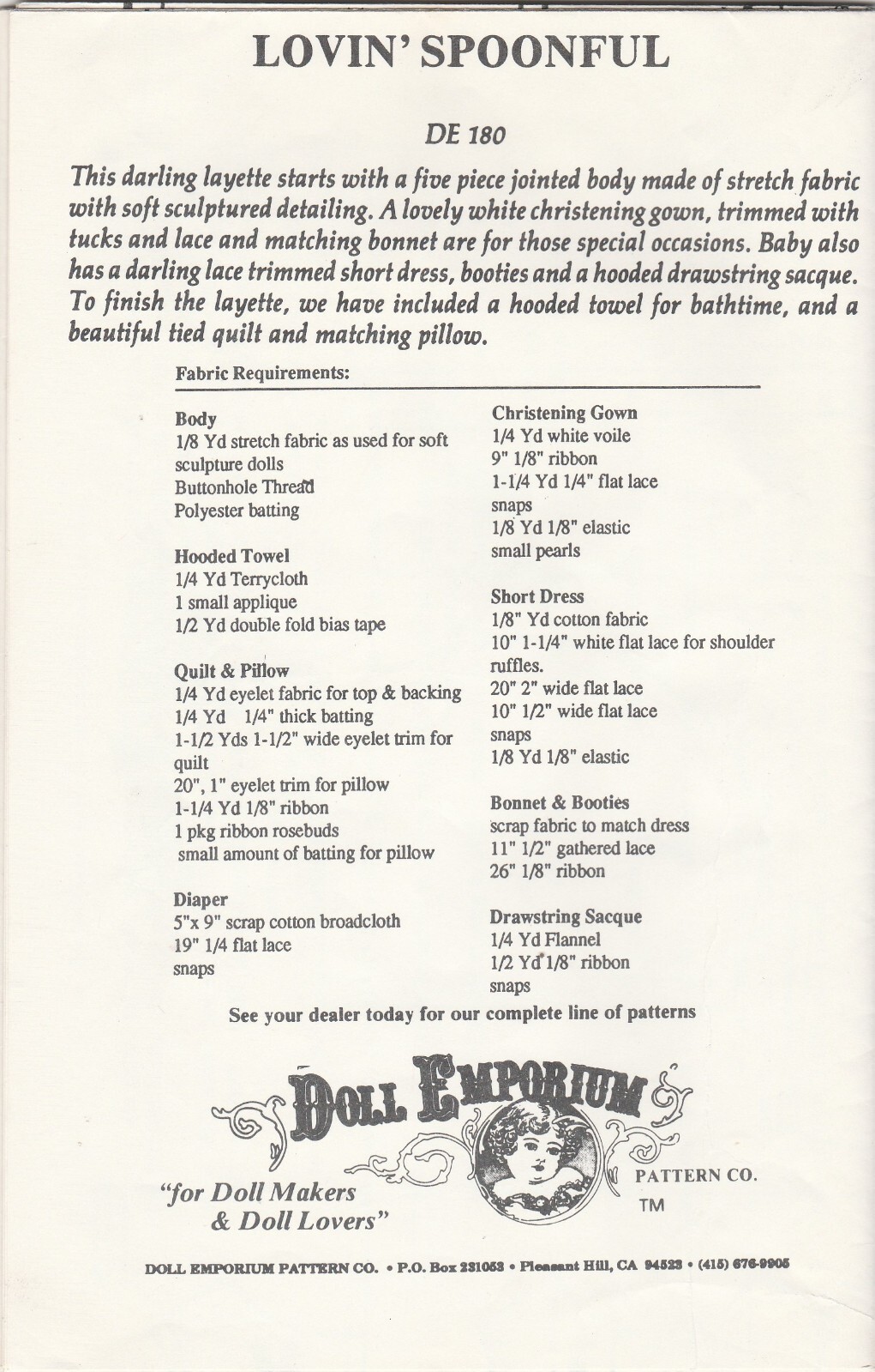 Dolls Emporium Pattern #DE180 ~ Lovin' Spoonful ~ 1987