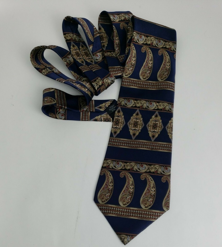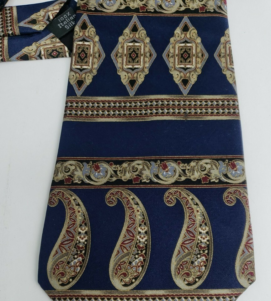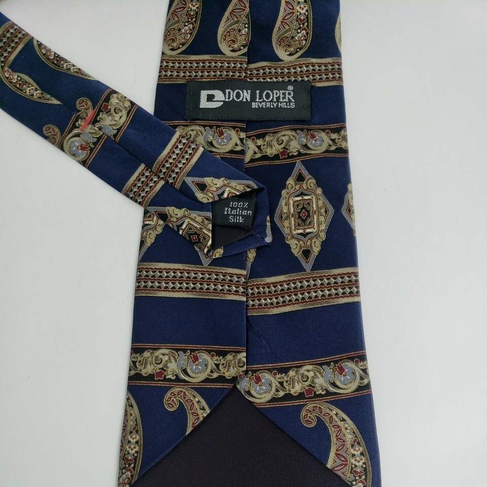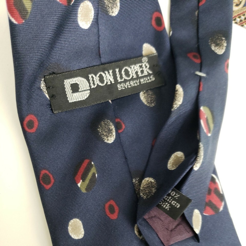 - Don Loper Beverly Hills Tie Lot of 2 Italian 100% Silk Paisley Navy Spotted 60"
