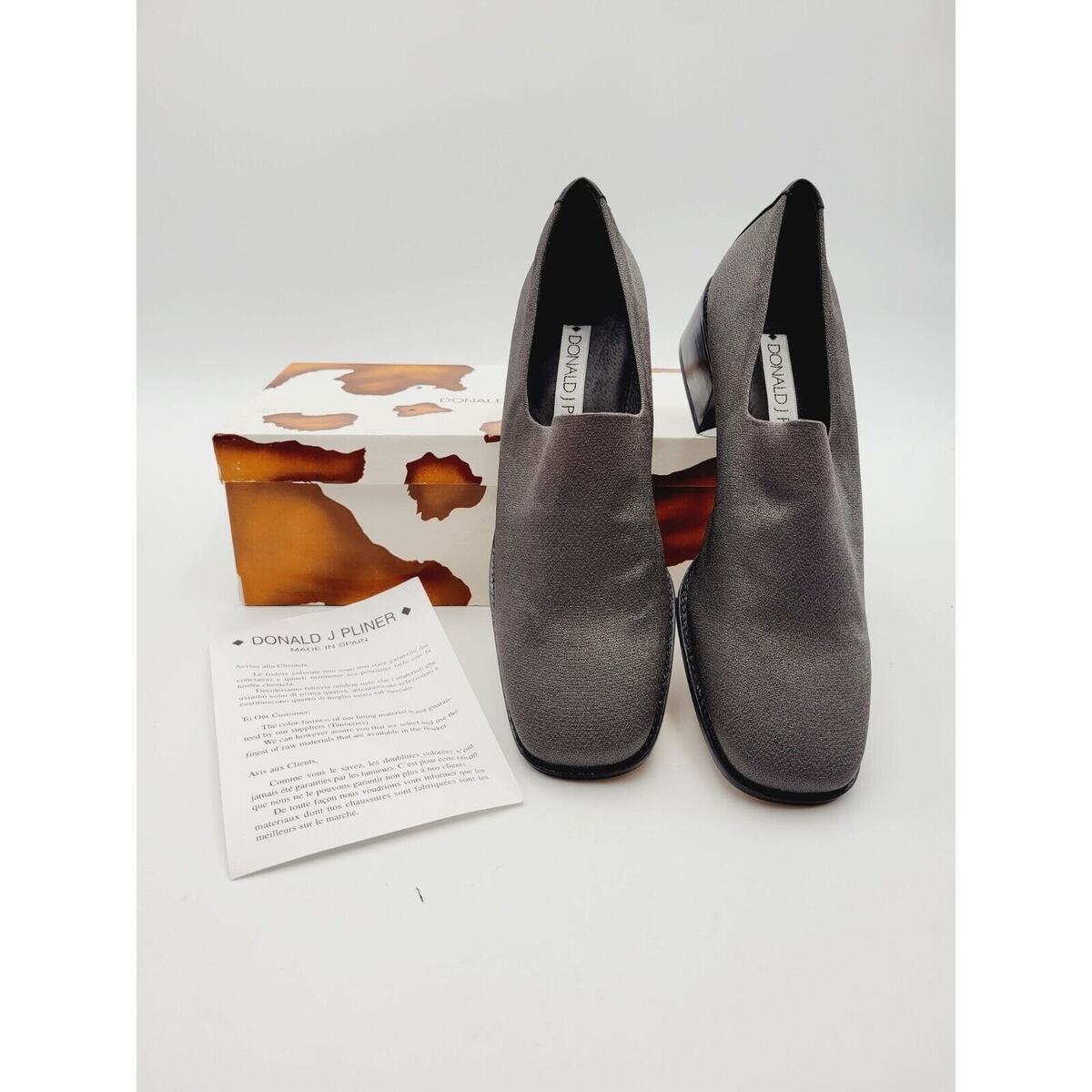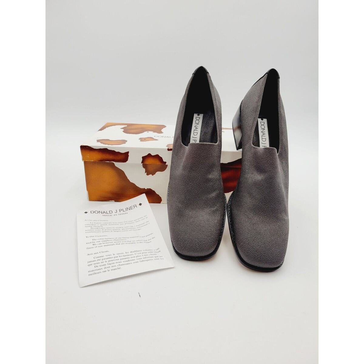 - Donald J Pliner Heels Womens 8.5 M Pumps Block Gray Fabric Square Toe Casual Ita