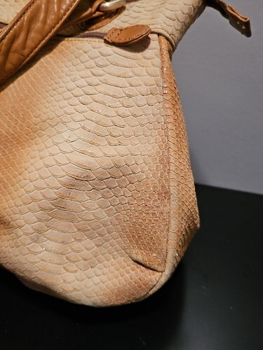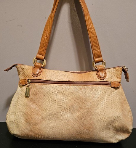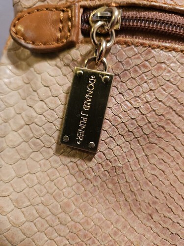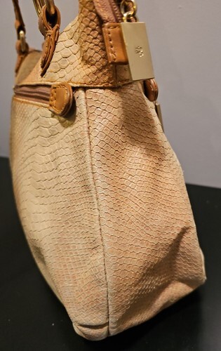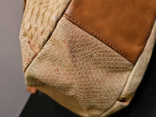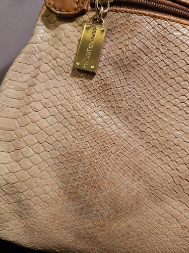 - Donald J Pliner Shimmery Tan large BOHO Snake Skin Hobo Bag Purse