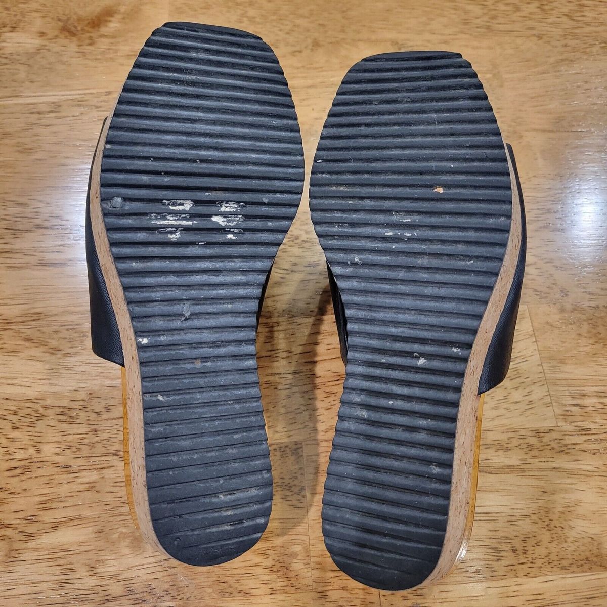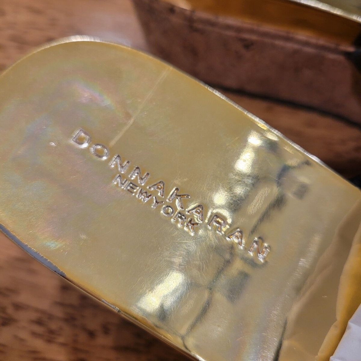 - Donna Karan New York Deena Metallic Leather Slides Square Toe Cork Platforms S 6